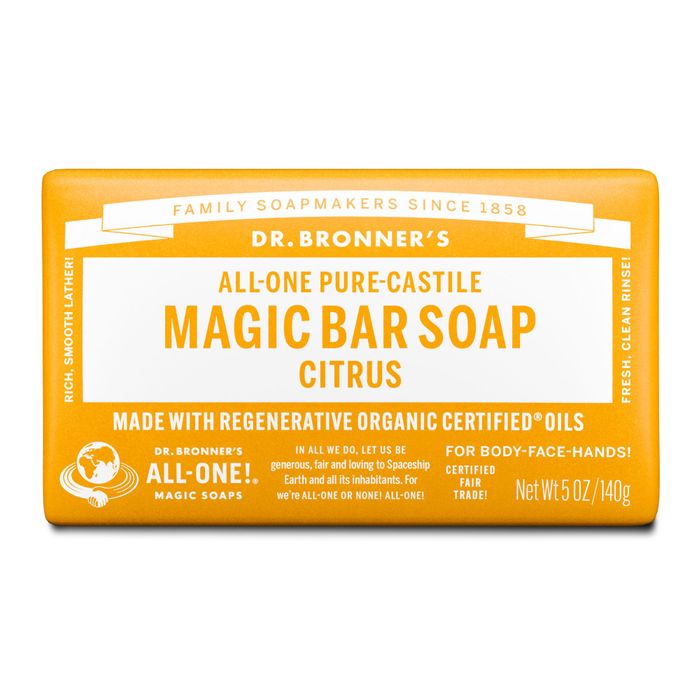 - Dr Bronners Citrus ALL-ONE Pure-Castile Magic Bar Soap 140g